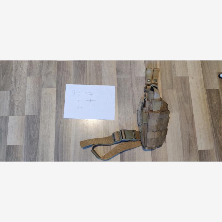 Myyntiin tosiaan merkkiä x pistoolihosteri hiekanvärinen pistooli holsteri jolle ei ole itselle käyttöä 10 euroajoku pistoolilipastasku värissä multicam, aika kulahtanut, mutta toimii 2 euroa