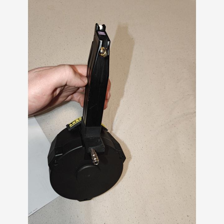 Myyntiin tosiaan otsikon mukainen hpa rumpu. Toimii sähköisellä syötöllä ja paineilmalla. Itsellä toimivan hyvin, mutta pistoolilla niin vähän pelaan niin laitetaan eteenpäin. Lisätietoja https://tappairsoft.com/product/tapp-hicapa-drum/Lisätiedot nolla neljä viisi 196 1610.