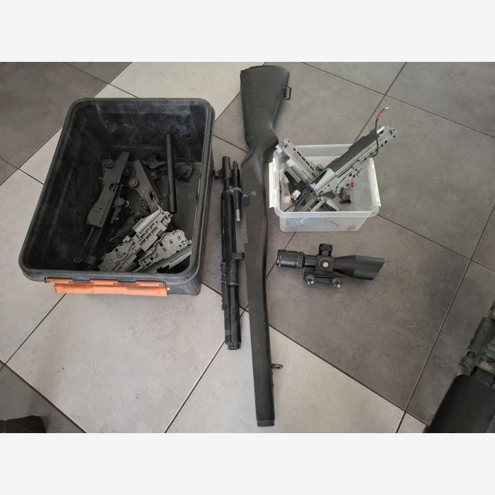 Myynnissä Hpa g&g m14 ebr demari. Sisällä mancgaft:n pdik + cnc mecha (tämä siis mancgaft:n valmistama ja juuri g&g m14 tarkoitettu, ei taida muuten enää oikein saada mistään näitä!) . Kasa lippaita, 4kpl uutena ostettu (käyvät vain g&g m14:sta nämä kaikki lippaat). Kasa aeg m14 osia ja mechan kuori + g&g m14 socom:n vajaa runko, myös jotain muuta m14 runko osaa. Yksi kiikari kaupanpäälle. Pelikuntoinen, mutta jos aivan priimaa haluaa, niin pientä fiksailua voi tehdä (mm. Perä/kahva kombo hieman heiluu) . Ja tähtäin kisko diy muokattu, saa tähystimen kiinni huomattavasti paremmin ja asiaankuuluvasti päälle.Vaihtuu kylmään käteiseen tai mahdollisesti maruin ebbr vehkeisiin. Lähetyskulut ostajalle. Kulkeutuu battlegpoup:iin tarvittaessa.