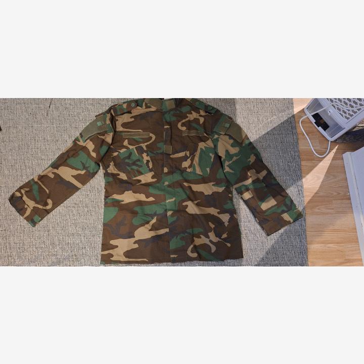 Käyttämättömät camo housut ja takki vastaa noin XL kokoa