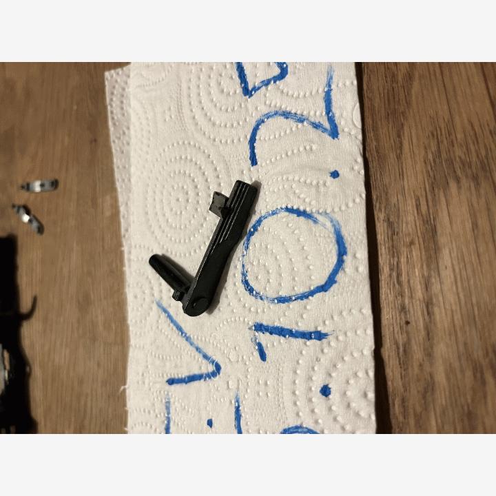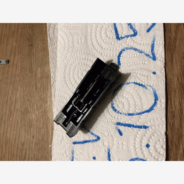Varoituksen sana: 3d printattu kisko on nähnyt spraymaalia ja sen poistoainetta ja seurauksena näiden yhdistelmää voi edelleen jäädä käteen, tätä käsitellessä. Yritän lähiaikoina putsata kiskon.