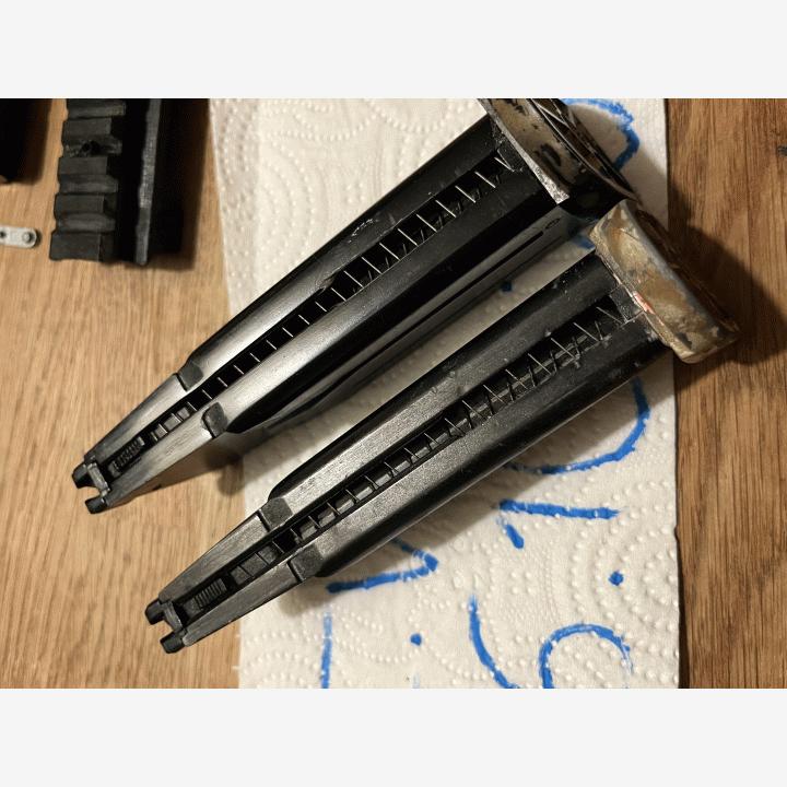 -2kpl mk23 lippaita. Toinen on ASG ja toinen on marui. Itse en pysty testata toimivuutta tällä hetkellä, mutta muistaakseni maruin lipas toimi niinkuin pitää ja muistan, että asg:n lipas kyllä pitää kaasut sisällään, mutta ihan kuin se ei päästäisi tätä kaasua tarpeeksi ulos, ampuessa, eli tehot oli kovin onnettomat.