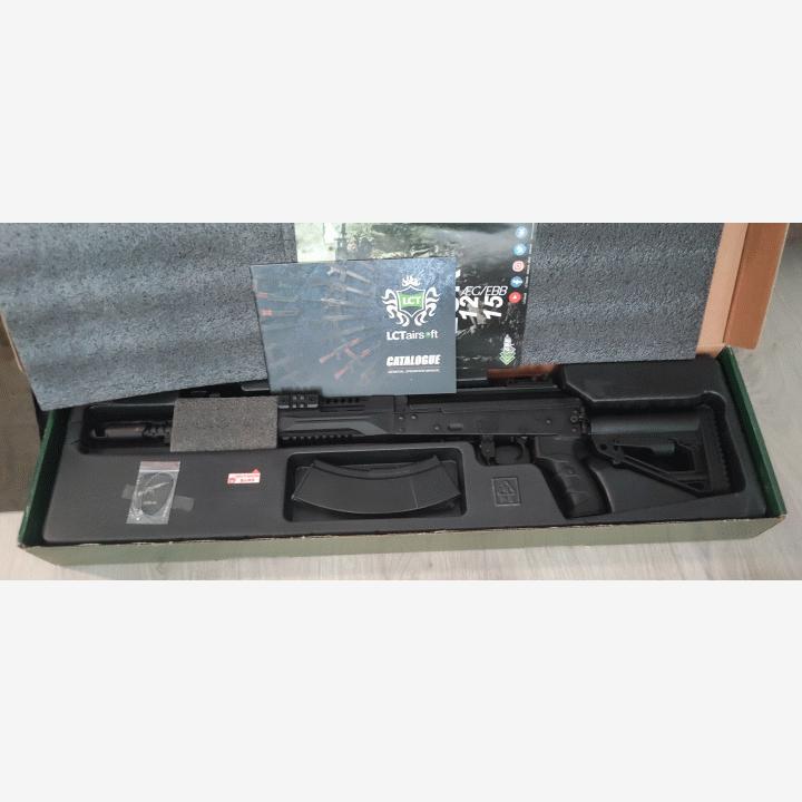 LCT LCK 15 EBB ( Ammuttu vain pari lippaallista). Tässä aseessa kunnon potku.. ja äänet. Koko receiver liikkuu ja aseessa on tehtaalta suoraan teräsmäntä. Uutena maksanut ~750e. Mukaan 3 ak lipasta.Muuta mukaan pakettiin: