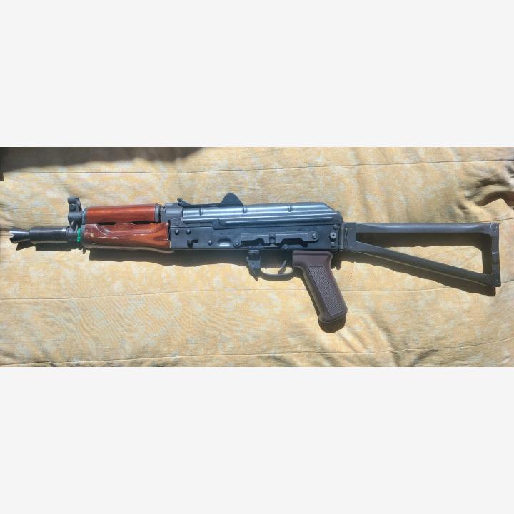 Näppärä E&L:n AKS74U, vanhaa Gen. 2sta noilla hyvillä puuosilla. Gunfiren viritetty versio ASCU mosfetilla ja jollain tarkkuuspiipulla.Pelejä nähnyt, naarmua rungossa ja puussa mutta hyvin toimiva ja perä edelleen jämäkkä.