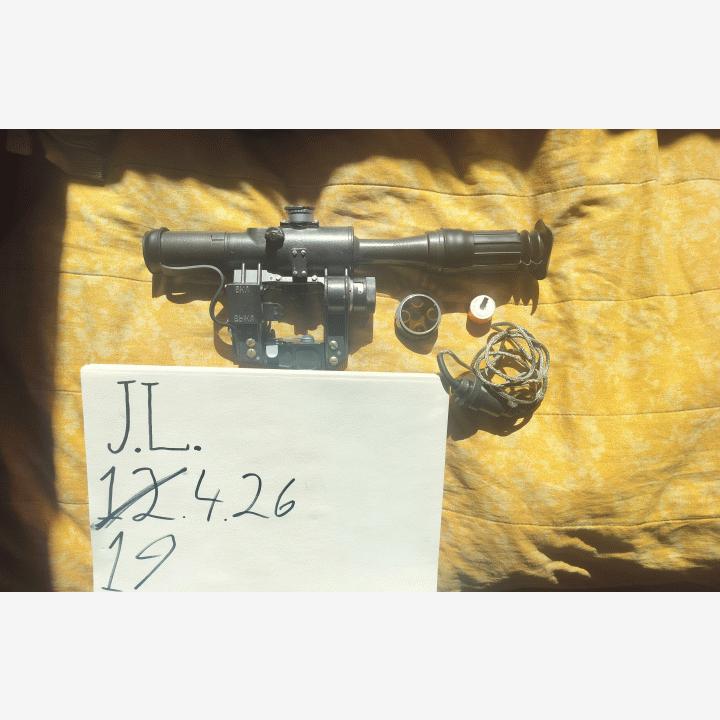 Elikkäs Nuevostovalmistettu PSO-1 kiikari, vanhempaa mallia jossa IR tutka (ei tietääkseni kyllä toimi enää).Hyväkuntoinen, linssit ehjät ja ristikko terävä. Mukaan jotain alkuperäisiä tarvikkeita joista en hirveesti tiedä.