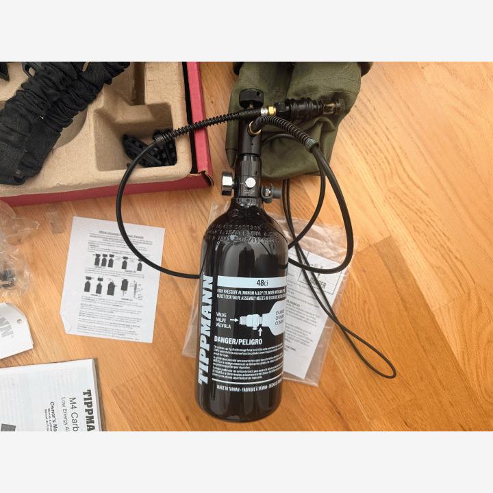 + HPA-pullo: TIPPMANN 0.8L 200 BAR PULLO + HP REG ja NINJA MICROBORE REMOTE W. SLIDE CHECK