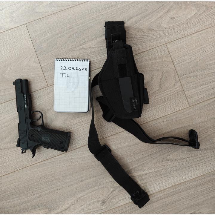 Toimiva metallirunkoinen C02 pistooli. Mukaan strikesystemsin kangaskotelo.