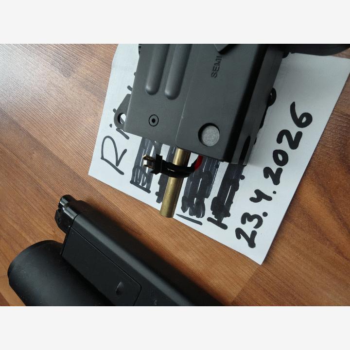 Elämään nähnyt aep mac10/11. Perä on hukkunut/irronnut/mennyt rikki. Yksi tappi hukkunut. Ampuu pelkästään sarjaa, sen verran hidas toki 7.4v akulla, että pystyy ampuu semi. Vaihdettu Mini deans ja muokattu että mahtuu isompi akku sisälle. Ei siis toimi enään vakio aep akuilla. Kronottaa 0.5j paikkeilla muistaakseni, 0.25g.Mukaan 2 hiku lipasta ja silu.