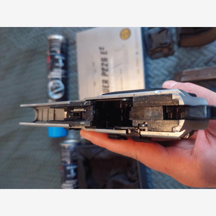 Hyvässä kunnossa oleva pyssy, mikään ei vuoda, yksi täynnä oleva kaasupullo