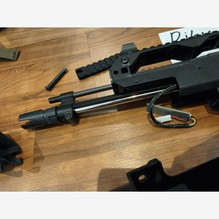 Hpa gekko rakennettu laadukkaaseen runkoon. Wolverine kestävä smp koneisto, g&g rotoryl ja vihreällä kumilla, noin 300mm 6.03mm teräs rööri.Mukaan iso kasa tärkeetä oheiskamaa: 2xg&g omia laatu midi lippaita, 3x king arms midi lippaita, vakio lipaskuilu, Maruin lipaskuilu, kiinni oleva M4 adapteri (epm syö hyvin esim) ja isompi etupää.