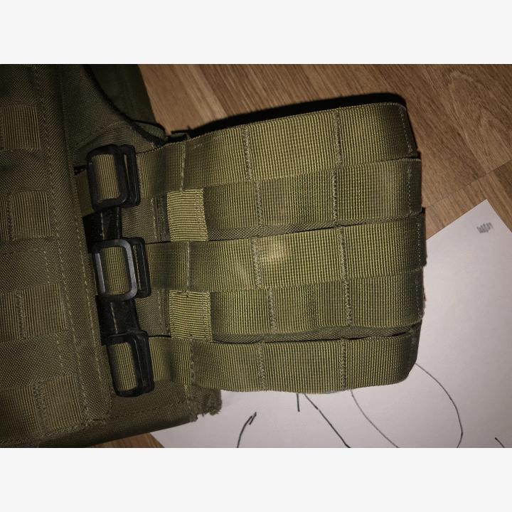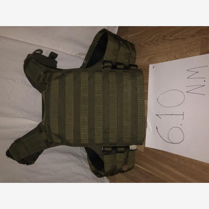 Platecarrier paino n.3kg. Hyvin säädettävä ja tilaa lippaille löytyy. Osa kiinnikkeistä metallia, kuin kuvassa näkyy.