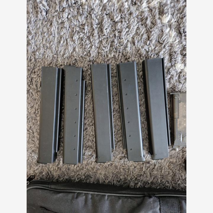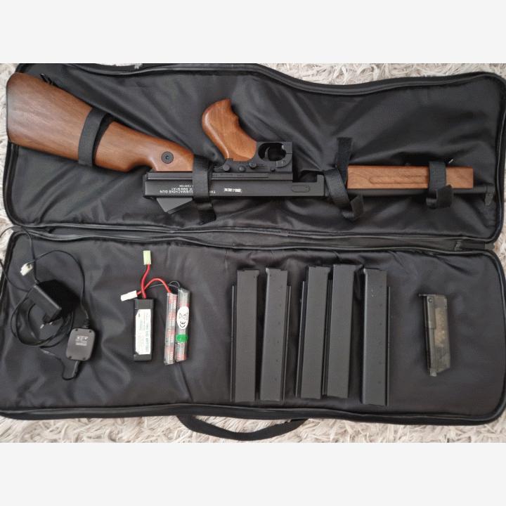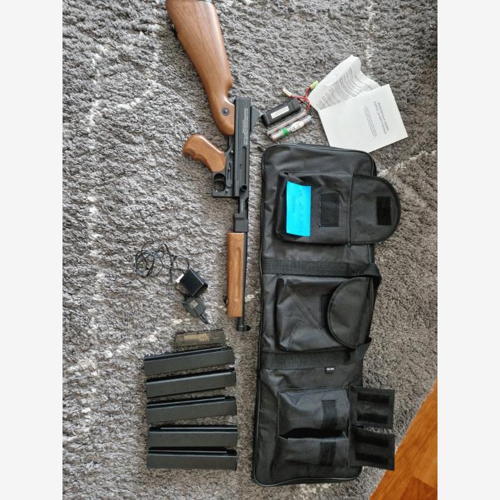 Myydään koko setti kerralla.Itse ase on kuin uusi, ikinä ei ole viety edes kentälle ampumista varten. Aseessa ainoa vika on, että lippaanirrotus vivusta on pääty lohjennut irti. En muista varmanpäälle mutta ase taitaa olla Cybergun merkkinen.