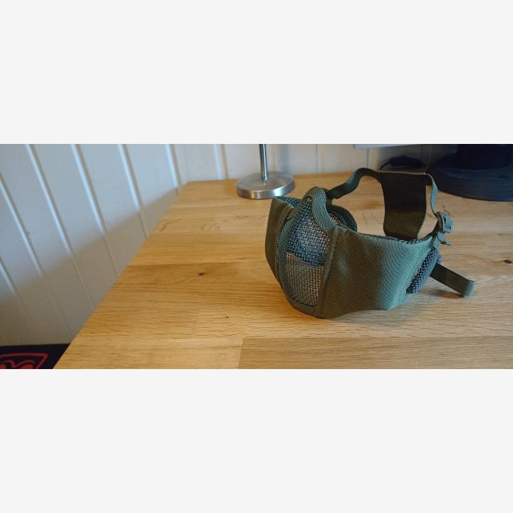 Käyttämätön ritileikkö maski joka suojaa alakasvot ja korvat elikkä tämän kanssa täytyy sitten käyttää vielä laseja jos tahtoo näkönsä säilyttää.Maski on tosiaankin käyttämätön koska sillä ei voinut minun aseeni kanssa tähdätä ilman korotuspalaa tähtäimelle. Tilanne voi kuitenkin olla eri muille ase malleille.