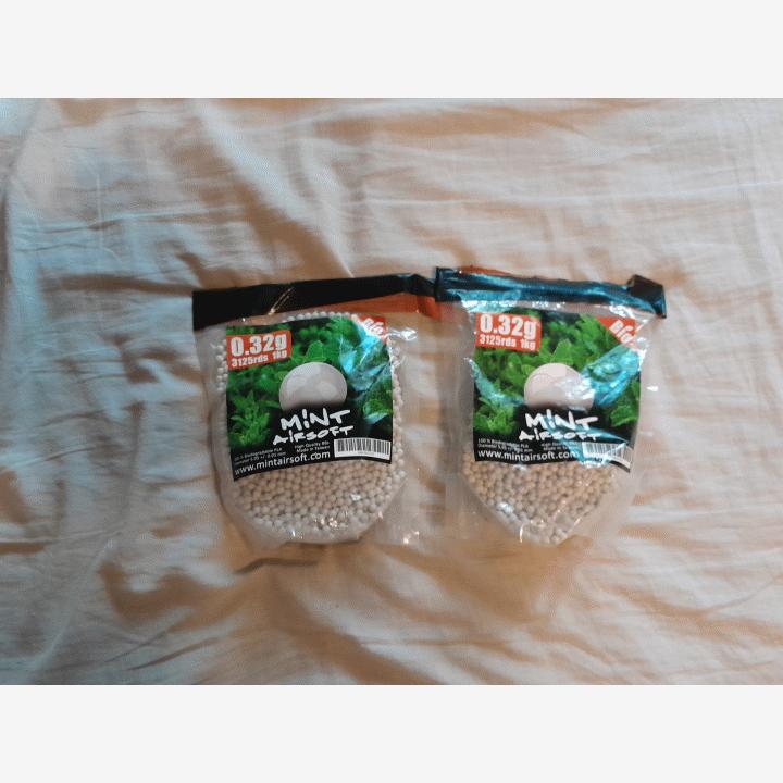 Ja kaksi avattua säkkiä kuulia jossa yhteensä noin 5500kuulaa jäljellä