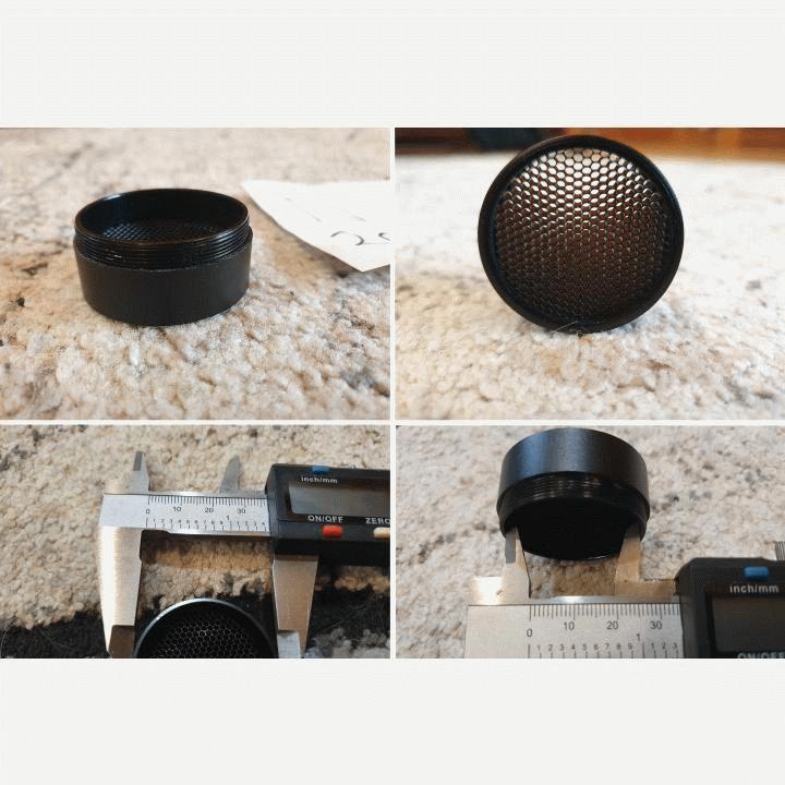 -toinen vasemmalta alhaalla honeycomb killflash kiikarinsuoja, kierteillä. Hinta 5€.