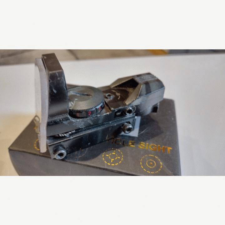 -MYYTY vasemmalla ylhäällä käyttämätön Vector Optics 1x23x34 gen2 Ratchet punapistetähtäin ja siihen 14 lisäparistoa sisällä olevien lisäksi (3 menee kerrallaan). Pikakiinnitys 20mm kiskoon, eri tähtäinkuvioita punaisena ja vihreänä ja eri kirkkaustasoilla. Ohjeita yms. mukaan. MYYTY.-oikealla ylhäällä käyttöä nähty ja maalattu avoin punapistetähtäin, jossa mukana irroitettava itse muotoon työstetty polykarbonaattisuojalasi. 4 eri tähtäinkuviota ja eri kirkkaustasoja punaisena ja vihreänä. Kiinnittyy 20mm kiskoon. Hinta 20€.