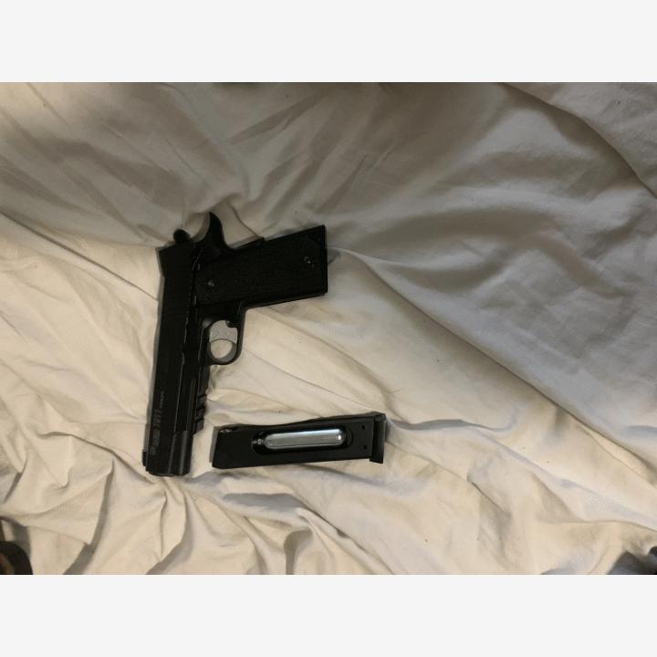 Kaasu pistoolin mukaan tulee yksi lipas.Paljon ei ole tullut käytettyä isoimman osan elämästä ollut sisätiloissa ase kassin sisällä.