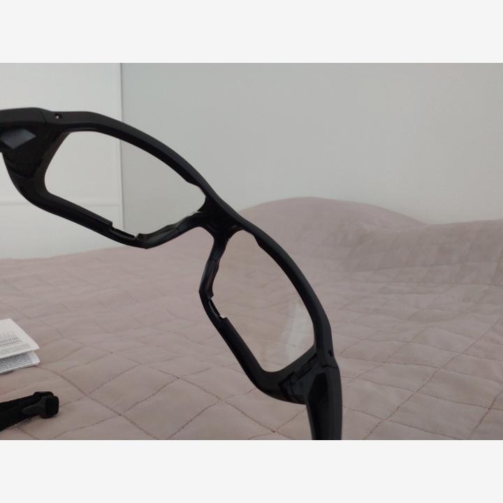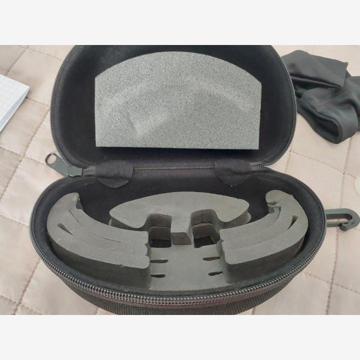 Lasien mukana alkuperäinen paketti, ohjeet, kotelo, remmi, huurteenestoaine, mikrokuitupussi ja itse lasit.