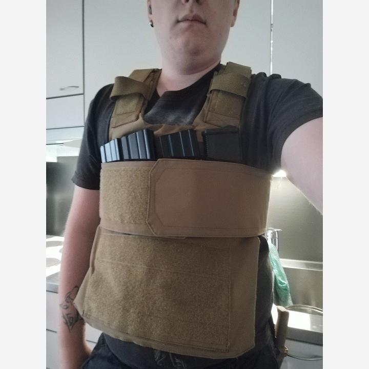 Myydään ehjä suojaliivi pois. Velcro edessä johon saa esim lipastaskuja joita tulee mukaan kaksi tuplataskua mallia ar. (kuvissa olevat lippaat ei kuulu kauppaan). Takana iso tasku esim juomarakolle. Pitää saada pois kaapeista lojumasta kun tulee platecarrier. Siksi halpa. Nouto Kuopiosta ja en rupea postittelemaan.Voipi kysellä 0407293500