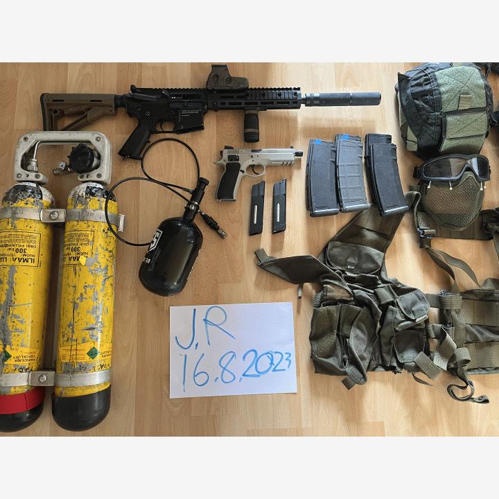 Setti sisältää tipman m4 hpa aseen (6 midcap lippaalla, holo tähtäimellä, magpullin perällä) ja cz75 sp-01 kaasu blowback pistoolin (kahdella lippaalla ja pistooli holsterilla) mukaan tulee myös highcat kypärä, naamio suojus, silmä ja ala naama suojain ja lipas liivi joka on aito m82 mukaan saa myös maasto asun kokoa s/m mukaan tulee pieni paineilma säiliö jolla ase toimii ja sitten tulee tupla 300bar täyttö pullot.Yhteyden otot +358 45 2071658
