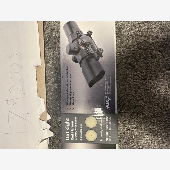 Myydään pari kertaa testattu ASG puna/viher pistetähtäin. Tähtäin on virheettömässä kunnossa. Tähtäimen mukana tulee säätötyökalu, linssinsuoja ja alkuperäinen laatikko.Puh/WA. 0413610368