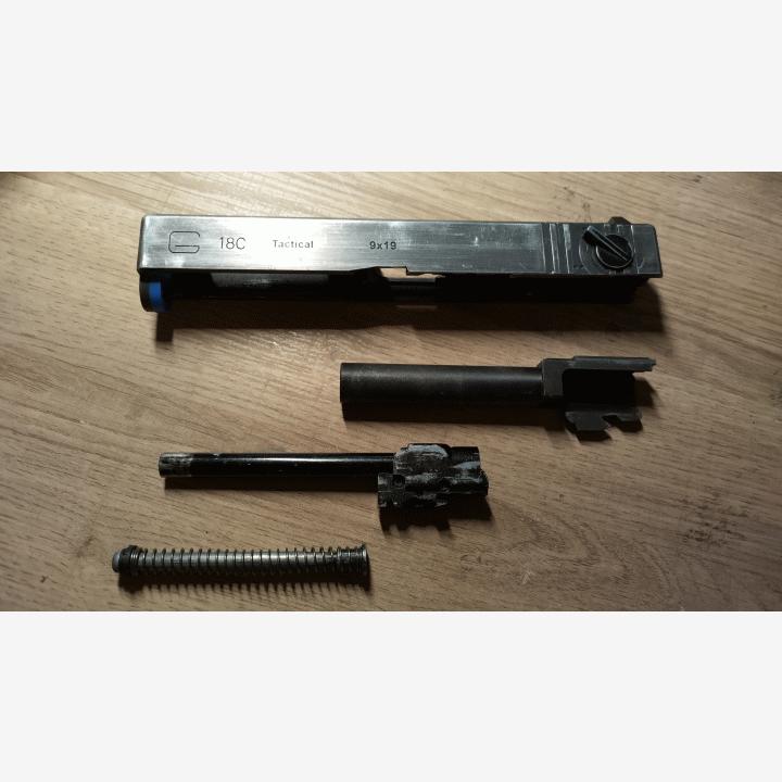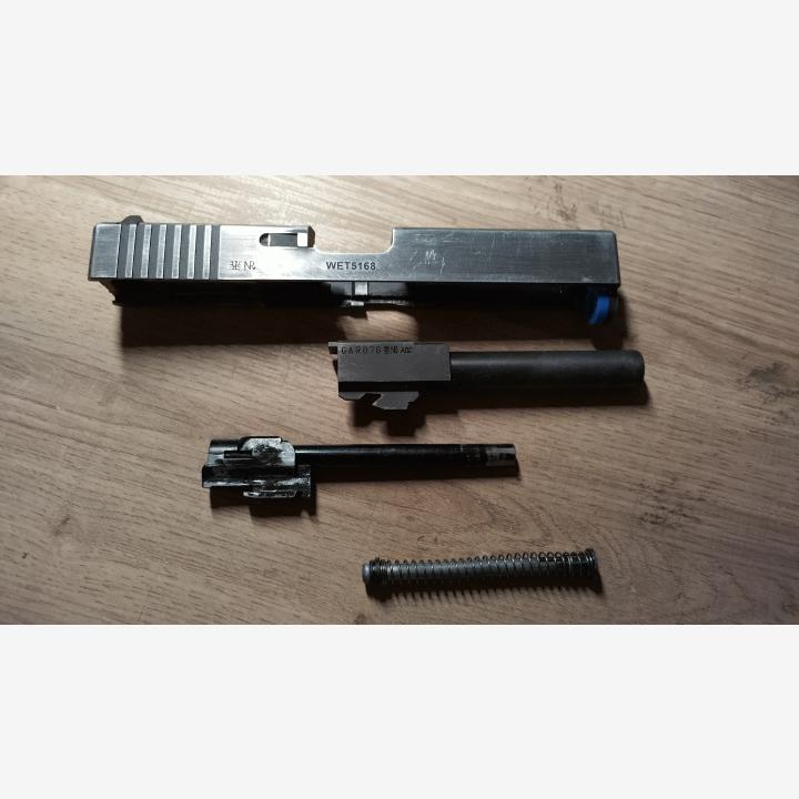 Alkuun harmikseni ilmoitan sarjatuliominaisuuden olevan rikki. Täten vaihdin on liimattu paikoilleen. Tippui sarjatulelle ammuttaessa ja ase sekoili.Vakiopiippu, A+ hoppikumi, Guarderin teräksinen ulkopiippu. Luisti hinkattu vesihiomapapeilla nuoremman minun mielestä hienoksi.