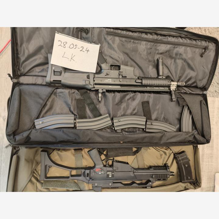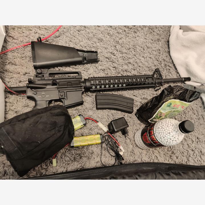 Airsoft paketti. WE 999C, MK16 MOD 0, M4 (rikki) aseet, kuulia, sälää, asekassit, suojalasit KAIKKI KERRALLA