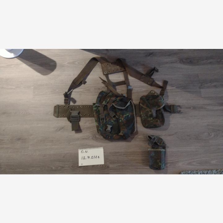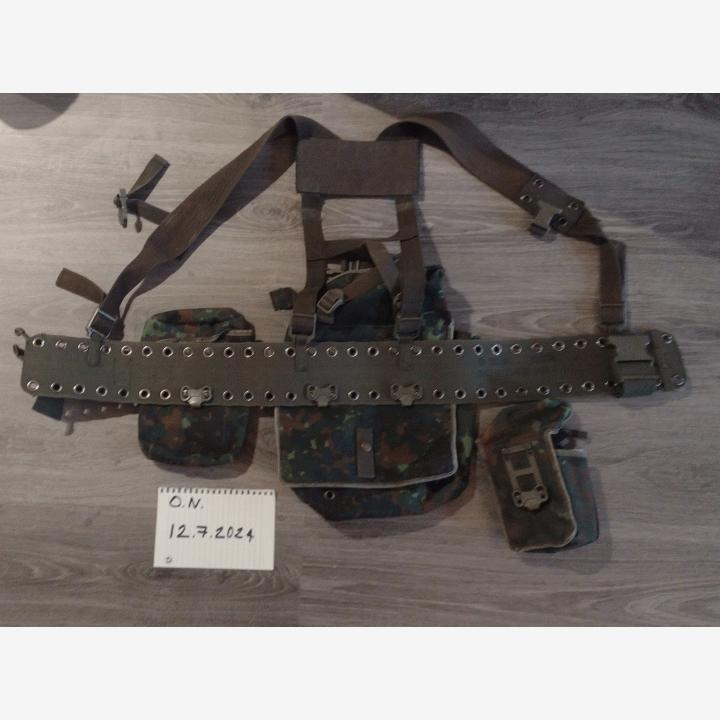-BW TST-vyö, vyön iso klipsu lohjennut jo 10 vuotta sitten, pysyy kiinni ja kireällä. Sis. 1 kpl G3 lipastasku, 1 kpl suuri tasku, 1 kpl pitkä yleistasku, 10€