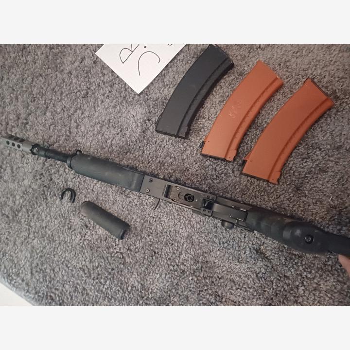 Käytettä cyman ak102 myynnissä, ase pelaa niinkuin pitää ja mukana saa kolme lipasta, aseen ovh hinta 220 joten ihan hyvä diili, aseen ylägrippi ei ole kiinni sillä en osaa laittaa sitä mutta sen saa mukana, ja yhdessä lippaassa on alalevy irti mutta sen pitäisi silti toimia, muuten ase toimii niinkuin pitäis.rohkeasti viestiä numeroon 0456022007