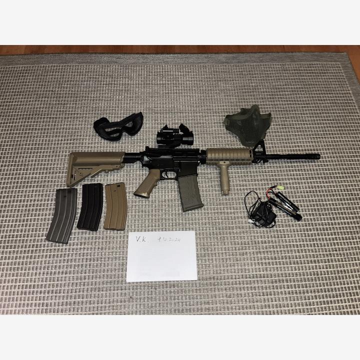 Myyntiin vähänkäytetty ja täysin toimiva Cybergun Colt M4A1 sähkökivääri. Ostettu 05.02.2020, kuitti ja alkuperäinen paketti tallessa. Tähtäin on Theta optics punapiste, myös laser. Mukaan tulee 4kpl M4 lippaita ja strikesystems lasit ja kasvosuoja. Akku hyväkuntoinen.