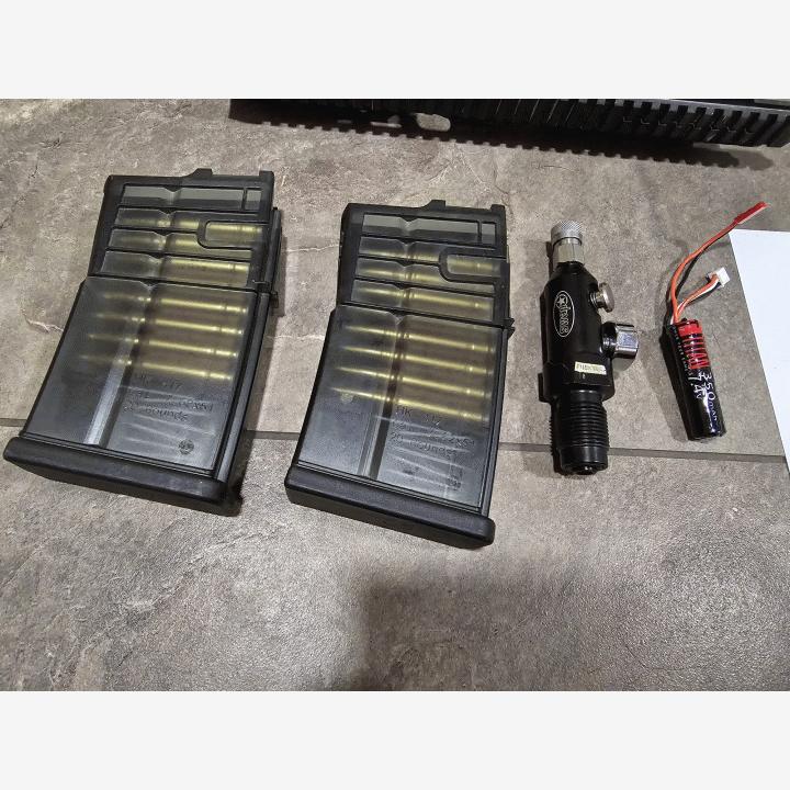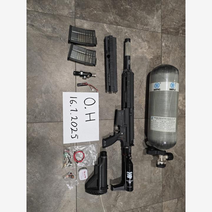 Koneisto on ollut alunperin milsim mallia, mekaaniset osat korvattu Redline omalla N7 Milsim to N7 konversio kitillä. Milsim osat mukanaan.