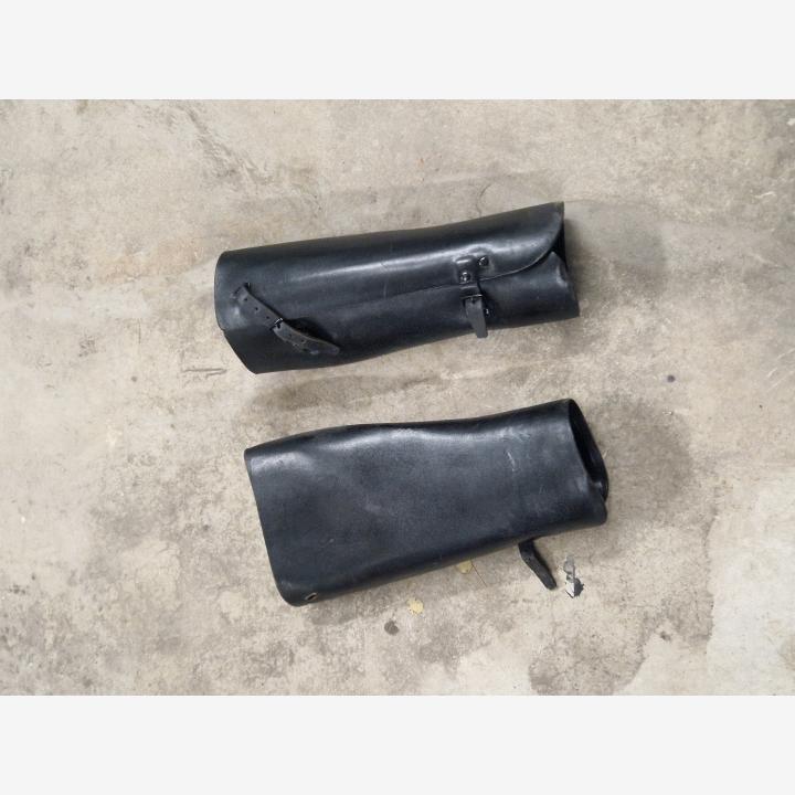 -Mustat nahkaiset säärystimet. Sopii karkeasti pitkälle ja kapeapohkeiselle kaverille. 10e