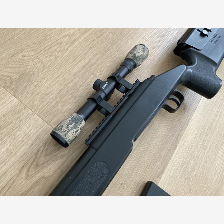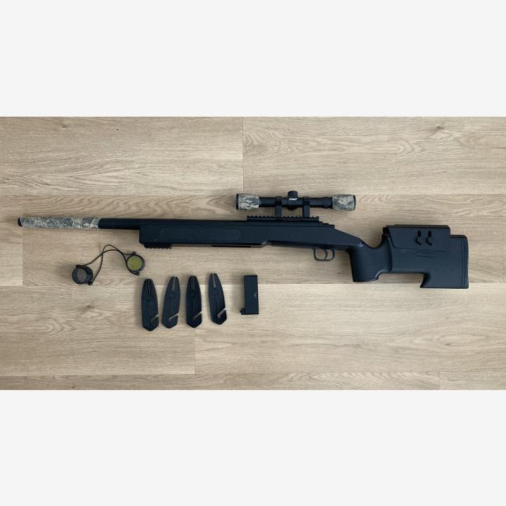 Tästä eteenpäin hyvä ja tarkka ASG M40A3 sniper.Uutena ostettu ja vain muutama peli pelattu kun ei ole ollut aikaa mennä pelaamaan.