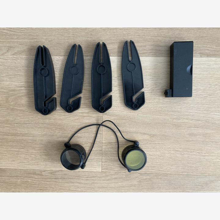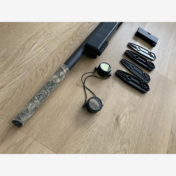 Mukaan tulee 4x32 suurentava tähtäin, lipas, linssin suojat ja tukkiin muutama jatkopala.