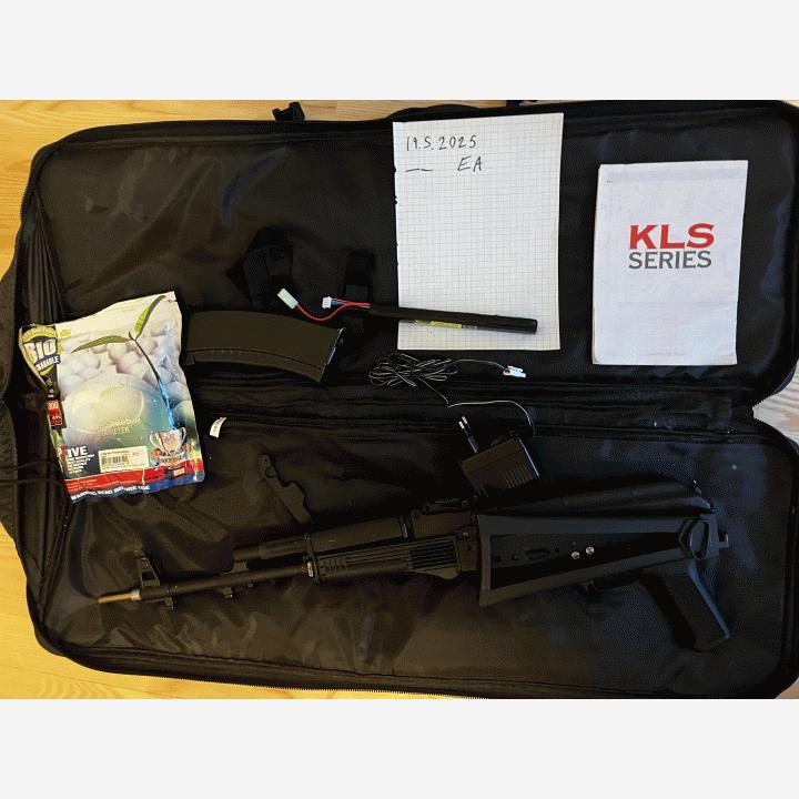 Airsoft ase, kuulat ja laukku. Ase on toimiva, mutta siinä on puutteita. Aseen ulkokuori ei ole kaikista laadukkain. Aseeseen on vaihdettu moottori ja akku muutama vuosi sitten ja laturi on vanhan akun laturi. Laita viestiä numeroon 040 938 1756 jos olet kiinnostunut.