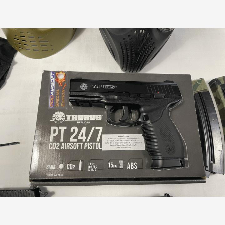 - PT 24/7 kaasupistooli, toimiva. Mukaan saa muutamat kaasupatruunat. (80€)