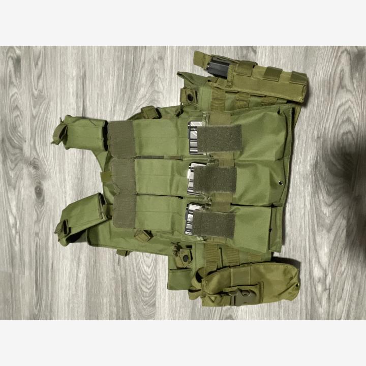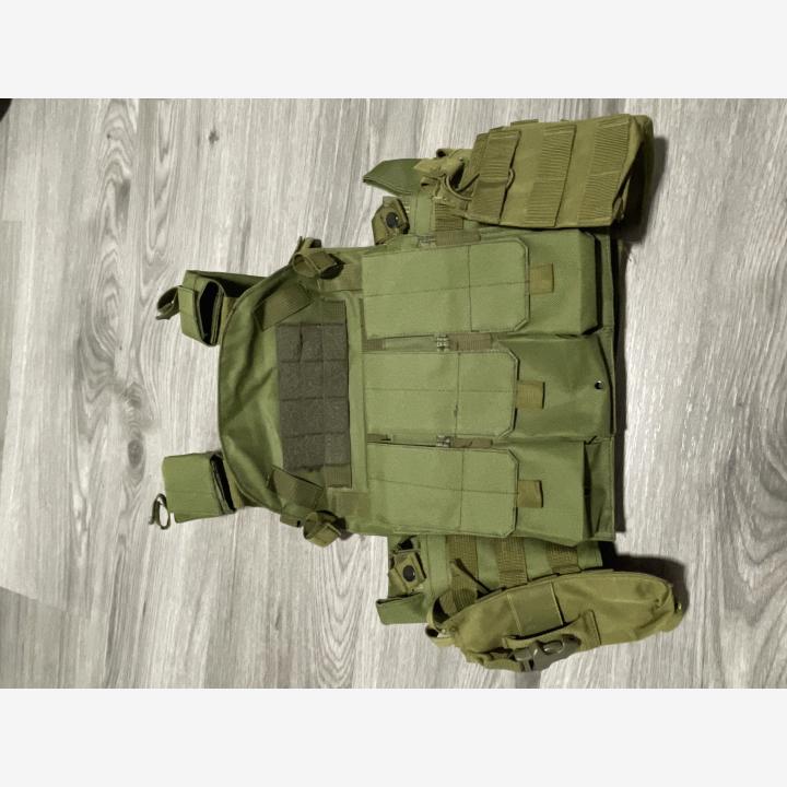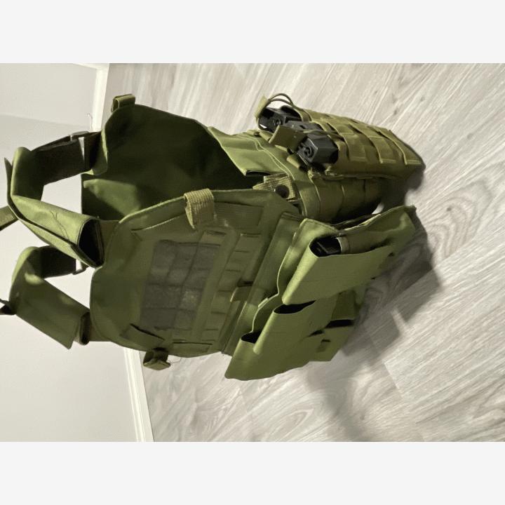 Liivi: Joku halpis luotiliivi replica. Jämäkän tuntuinen materiaali. Todella hyvin säätövaraa. Käytetty noin 3kk ja kunto kuin uusi. Taskuja tulee mukaan kuudelle lippaalle. Levyjä ei ole.