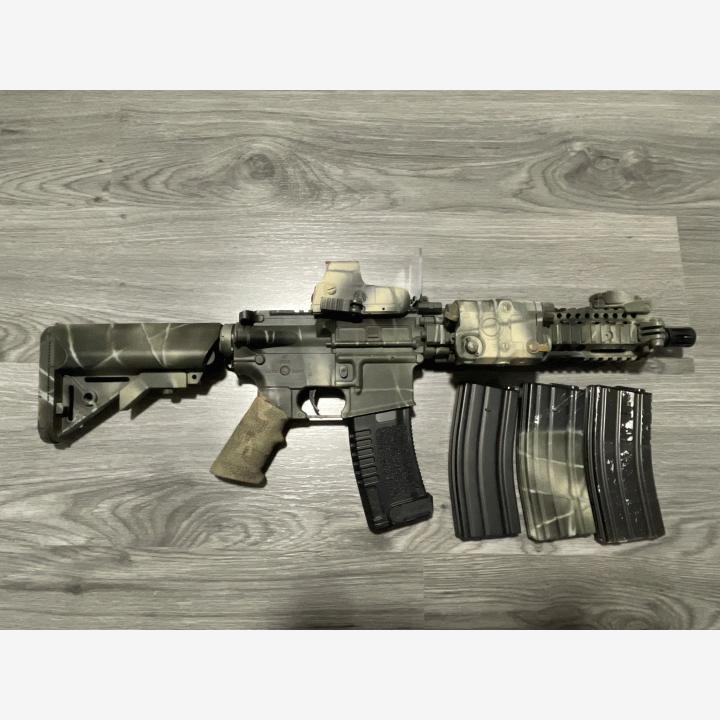 Ase:Specna Arms Daniel Defence MK18 SA-C19 Core. Vanha malli, ei saa uutena enää, pari vuotta takaperin maksanut Atom Airsoftilta 229€. Aseeseen vaihdettu juuri hoppikumi ja putsattu piippu. Mukaan puna/viher holo tähtäin sekä muita palikoita (kuvassa).
