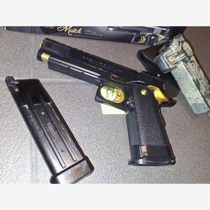 Tokyo Marui Hi-Capa 5.1 Gold Match GBB pistooli ja koteloYlimääräiseksi jäänyt pistooli. Täysin toimiva.