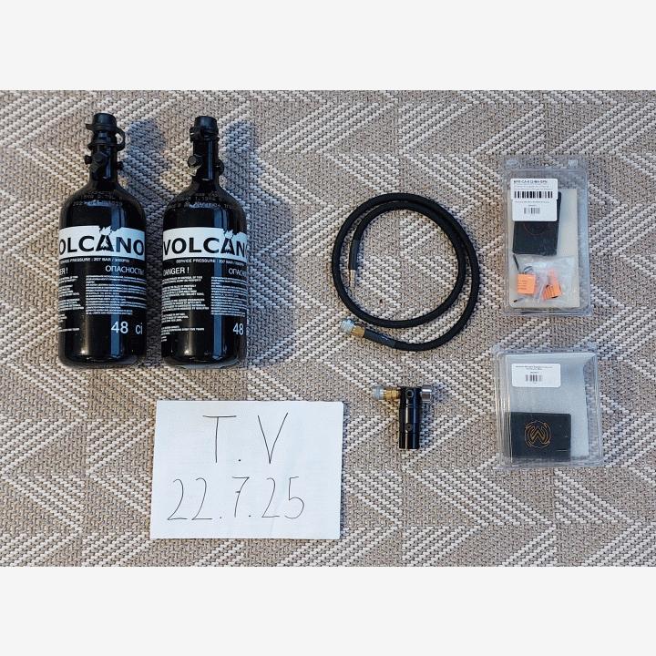 Halutessaan mukaan vielä 2kpl Volcano 0.8L 200bar pullot (4/2021, ensitarkastus 4/2026) ja Wolverine Storm On Tank regu-/letkusetti. Pulloja täytetty vuosien aikana max 10 kertaa ja säilytetty sisätiloissa, joten hyväkuntoisista pulloista kyse.