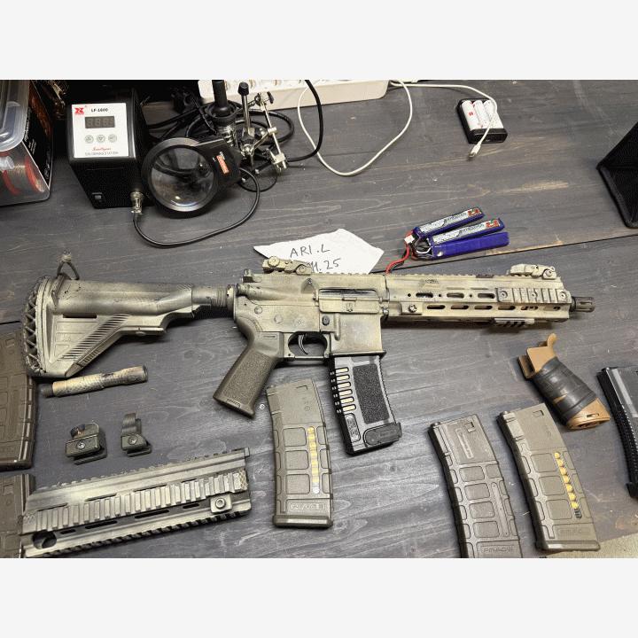 VFC HK416Maalattu. Ulkoa kiinavalmisteinen Geisselen kisko. Alkuperäinen 416 mukaan. Alkuperäinen piipun pidennysosa mukaan, sekä alkup pistoolikahva. Tähtäimet vaihdettu magpul buis, mutta alkuperäiset myös mukaan.