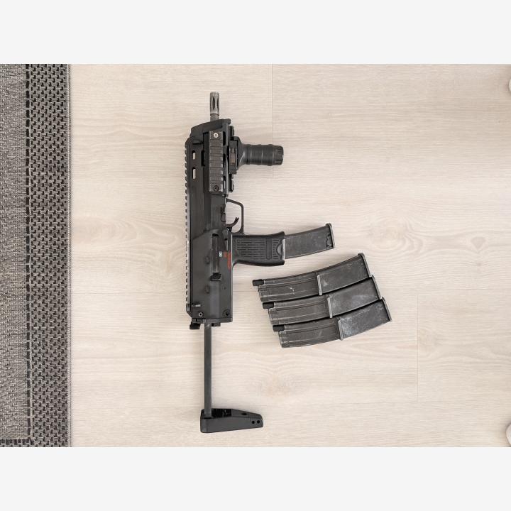 Myyntiin Tokyo Marui MP7 GBB.Mukaan 4 lipasta joista yksi hieman vuosi katotaan jos saan vielä kuntoon. Asennettu tuollainen kisko systeemi nokalle. Muutama ruuvi puuttuu kuten kuvista näkee. Yksi yläkiskosta ja molemmat rungon takaosan tapit hukkunut ja korvattu väliaikaisesti. Suosittelen hankkimaan uudet sopivat. Muuten käy hyvin.