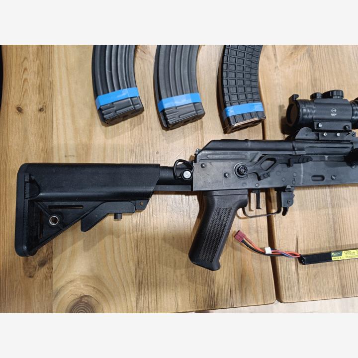 Myydään LCT TX-74UN setti. Ase on perusteellisesti juuri huollettu. Laadukasta terästä ja painaa varmasti saman verran kuin oikea versio. Rataslaatikossa kaikki on shs osaa ja moottori on shs high torque. Mosfet on gate x-asr. 3d tuostettua osaa on kaasuputki etukiskon sisällä. Kannen lukitusnupikka. Etukahva. Viritin tapin lisäosa ja kannessa oleva tähtäin kiinnike. "Lukko" eli hopin suojalevy ei ole lct:n mutta liikkuu hyvin. Vaihdin on retro armsin. Rataslaatikossa pikajousenvaihto mutta runkoa ei ole suunniteltu pikajousenvaihtoon joten laatikko pitää ottaa ulos sitä varten. Lähdöt noin 1.35j tällä hetkellä. Mukaan tulee akku, 3 lipasta, theta punapiste tähtäin ja ase. Yhteys watsapilla 0400211326.