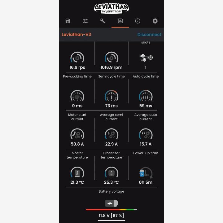 Leviathan mosfetin saa yhdistettyä puhelimeen. Sillä näkee aseen kaikki tiedot ja saa hienosäädettyä kaiken omien tarpeiden mukaan. (kuva)