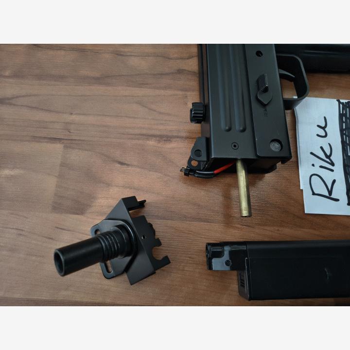 Elämään nähnyt aep mac10/11. Perä on hukkunut/irronnut/mennyt rikki. Yksi tappi hukkunut. Ampuu pelkästään sarjaa, sen verran hidas toki 7.4v akulla, että pystyy ampuu semi. Vaihdettu Mini deans ja muokattu että mahtuu isompi akku sisälle. Ei siis toimi enään vakio aep akuilla. Kronottaa 0.5j paikkeilla muistaakseni, 0.25g.