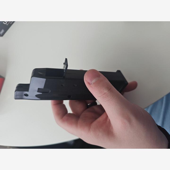 Käytöstä pois jäänyt jousipistooli. Lippaassa on säiliö joten lippaan täyttäminen onnistuu nopeasti.Ovh. 25.90€
