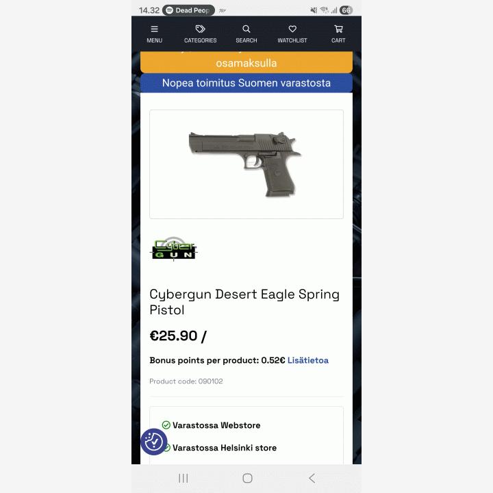Desert Eagle .50AE jousitoiminen airsoft pistooli